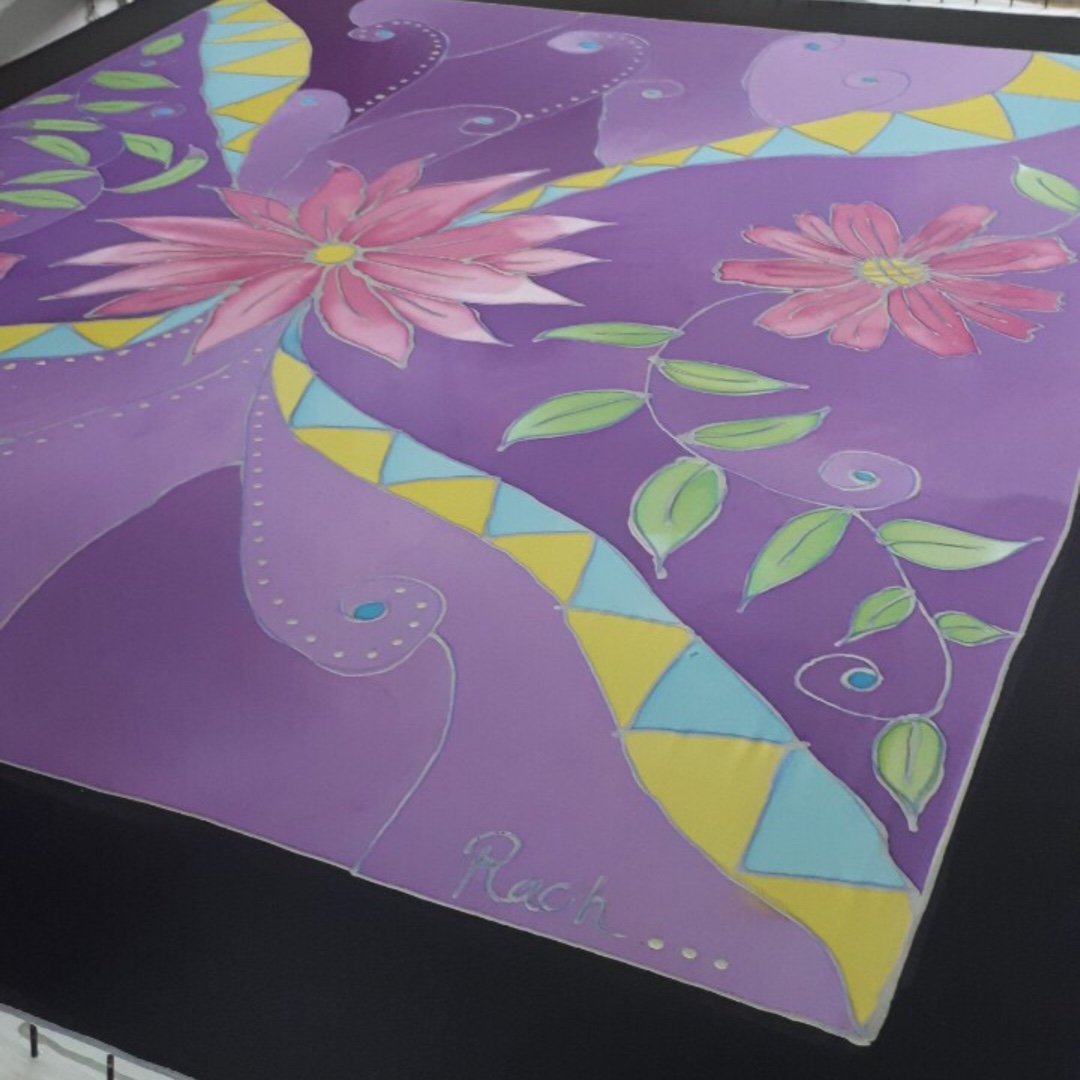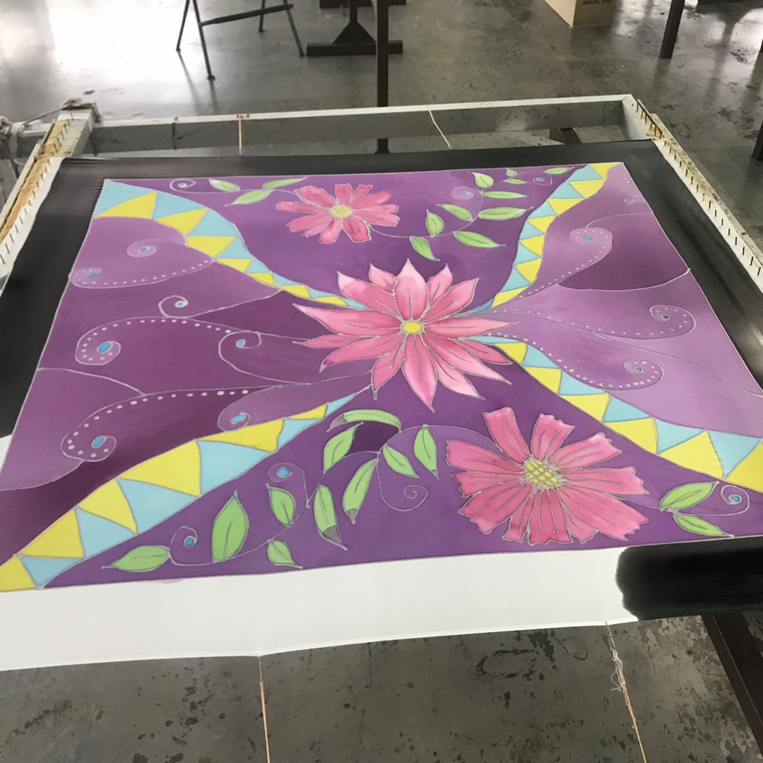 I chose a square silk scarf 90cm x 90cm. It is amazing to see how the colours blend together. Each and every batik designed is the one and only design. It is sketched free hand by their in-house artist.