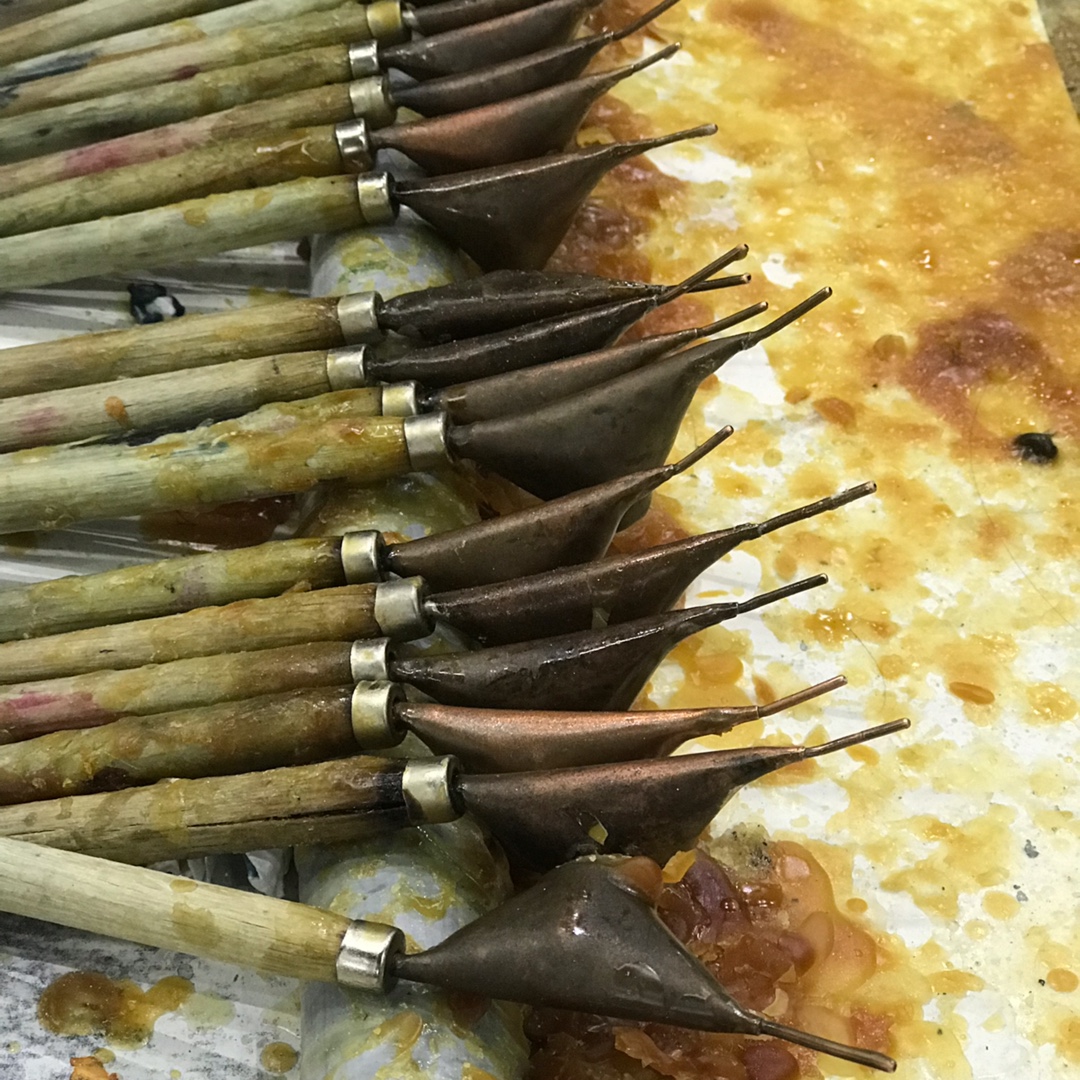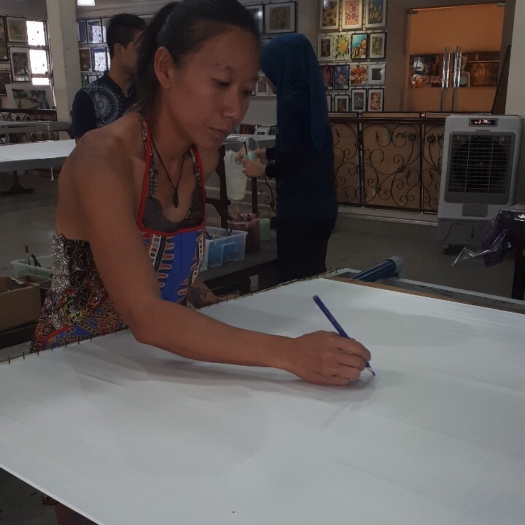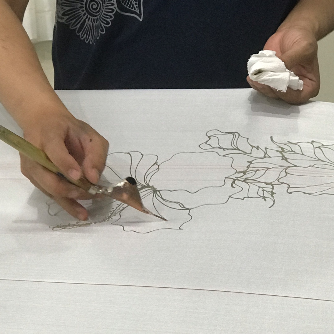 No pencil sketch, it’s straight to waxing the line process. Once you draw the line with wax, you can then colour your batik. When you complete your masterpiece, they are several process to make sure the colour stays on the cloth and also removal of wax will be done.